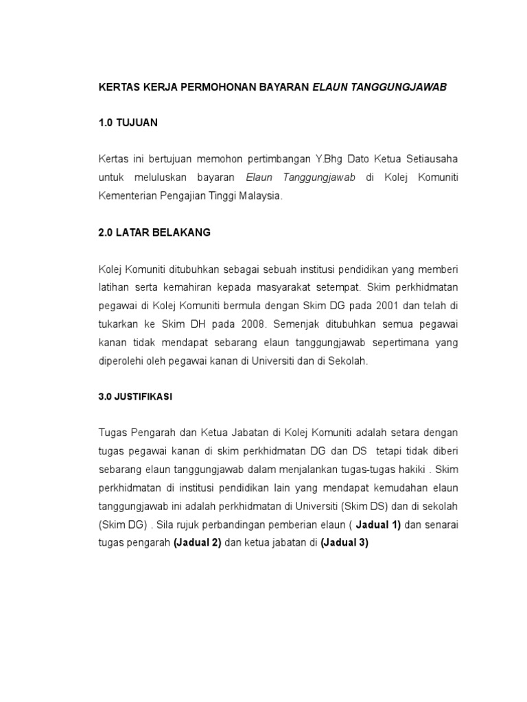 Kertas Kerja Permohonan Bayaran Elaun Tanggungjawab Kk Pdf